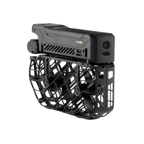 The HOVERAir X1 Pro Max is a foldable drone that weighs 192.5 grams with the battery installed. When folded, its dimensions are 105 x 149 x 34 mm. The propellers are fully enclosed within the frame, an