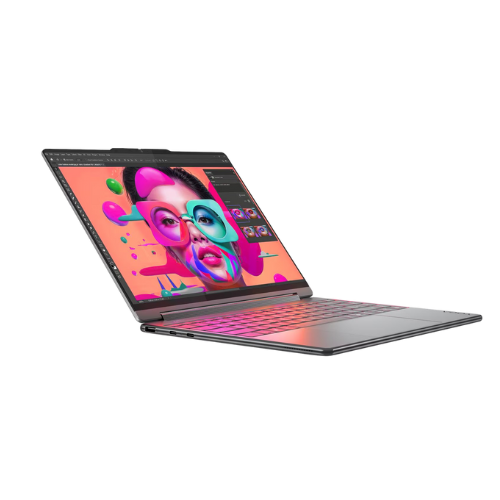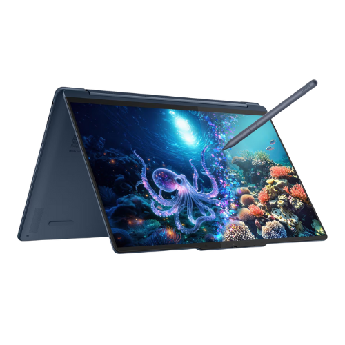 Weighing just 1.32 kg, the Lenovo Yoga 9 14Ill10 boasts a durable aluminum body, available in Cosmic Blue. The standout feature is its 14-inch OLED 2.8K WUXGA+ touchscreen (2880 x 1800) wit