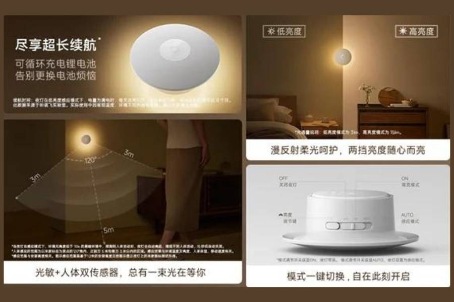 Other than that, it packs a photosensitive sensor along with a human-body sensor. Given that, it supports auto-brightness adjusting while sensing motion across 120° and up to 5 metres distance. In the tank, the Xiaomi Night Light 3 is equipped with a 600 mAh battery that can last up to eight months in low-brightness mode. When it runs out of juice, you can plug it in via USB Type-C and takes just 3 hours to fill up.