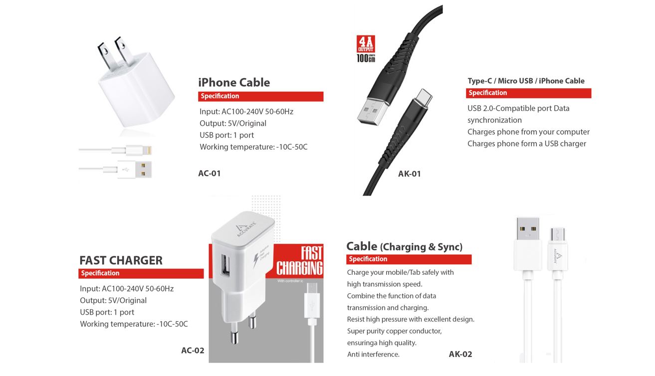 - Accurate AK-1 IOS Fast Charging Cable 3.0