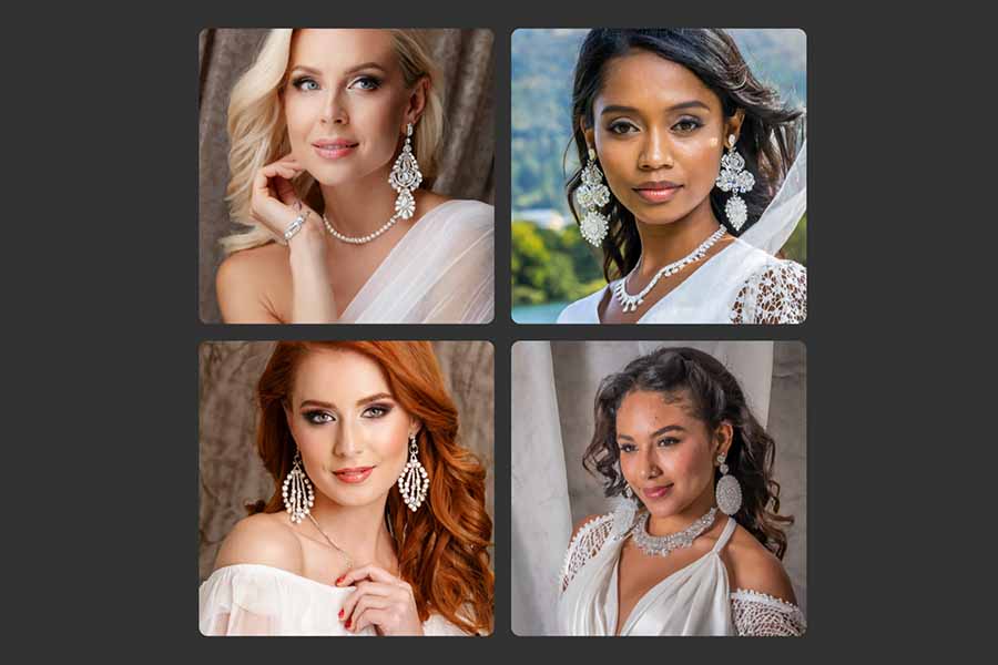 Prompt: a beautiful woman with a white draped flowing dress and diamond earrings