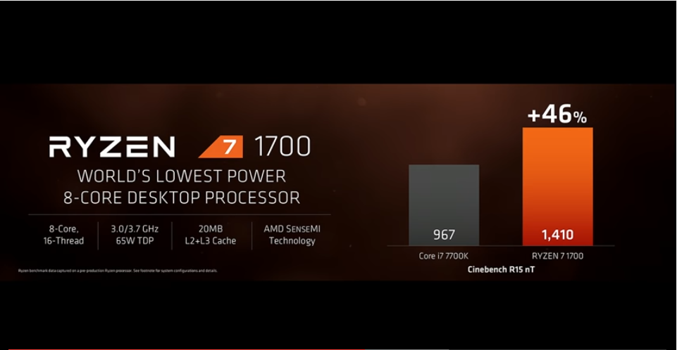 The Ryzen 1700 is allegedly 46% faster than its Intel counterpart i7-7700K that retails at $350. The Ryzen 1800X and 1700X has a 95Watts of TDP, while the Ryzen 1700 has 65 watts.