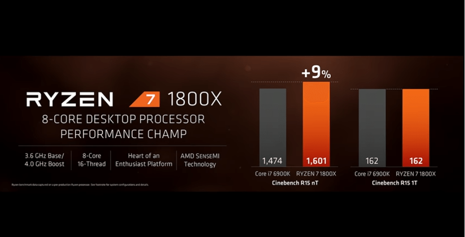 In the past few years, Intel has been dominating the high-end processors and the AMD processors have been limited to the low-end and budget processors. But, this could all change with the Ryzen 7 processors. The Ryzen 1800X is the most powerful of all and is priced at $499. It's an octa-core processor with 16 threads and clock base frequency of 3.6Ghz with turbo boost up to 4Ghz. In the Cinebench test, the Ryzen 1800X outperforms the $1000 Intel 6900K by 9%. This makes the Ryzen 1800X the fastest desktop processor in the market today.