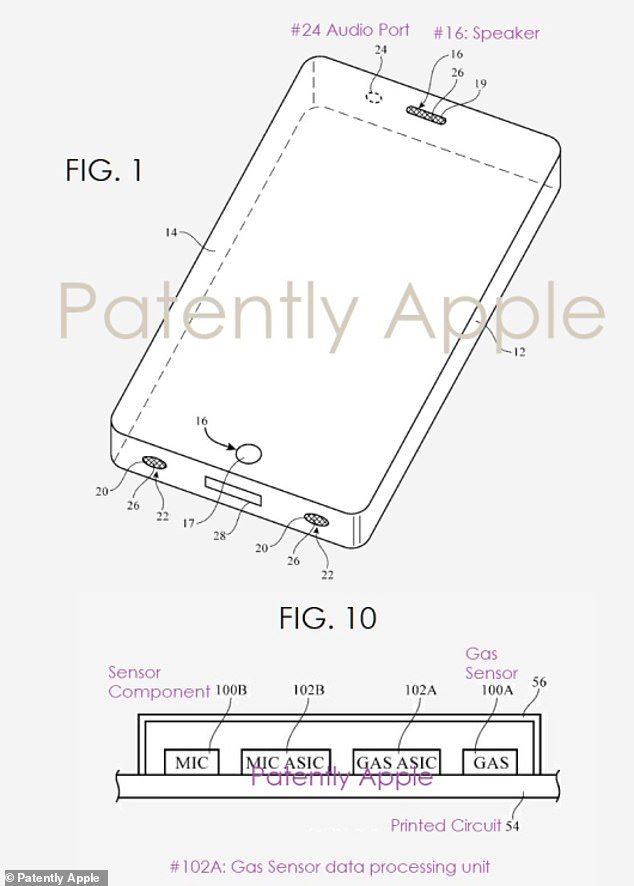 According to Patently Apple, it is the fifth of such devices, i.e. 'electronic devices with environmental sensors' from the company. The patents describes the device as a gas sensor attached to the printed circuit which is configured to measure the concentration of a gas. The gas to be measured is among a group of selected gases: carbon monoxide, carbon dioxide, alcohol vapor, propane, ozone, nitric oxide, nitrogen dioxide, benzene, methane, hydrogen, and oxygen.