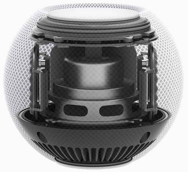 HomePod mini comes with a full-range driver accompanied by dual passive radiators. Apple is promising deep bass and crisp high frequencies with this setup. The Apple S5 chip is behind all the computational audio. The HomePod mini also uses an acoustic waveguide for the 360-degree sound effect.