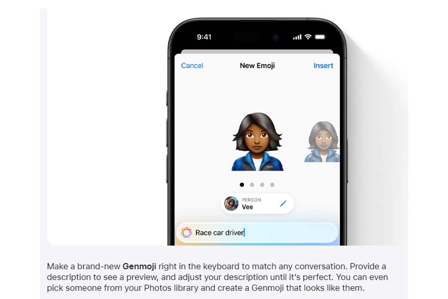 A new feature called Genmoji generates personalised emojis using AI algorithms. Users can create emojis resembling themselves or others, enhancing expression and communication in messaging apps and social media platforms.