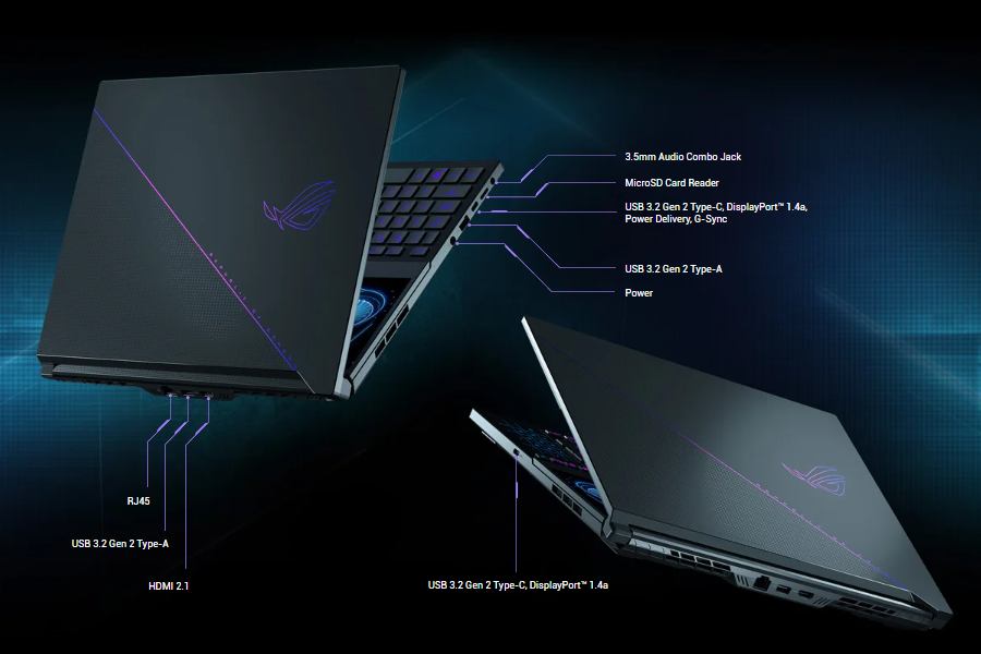 Talking of the ports options, the gaming laptop has 2x USB 3.2 Gen 2 ports, 1x USB 3.2 Gen 2 Type-C, (DisplayPort, PD, G-SYNC), 1x USB 3.2 Gen 2 Type-C (DisplayPort, G-SYNC), 1x HDMI 2.1 FRL port, 1x 3.5mm Combo Audio Jack, and 1x 2.5G LAN port. And the wireless connectivity includes triple-band WiFi 6E and Bluetooth 5.2.