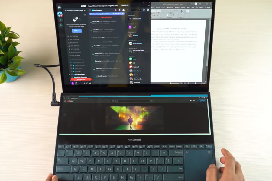The top-end Intel processor shouldn’t have, at least in theory, resulted in such performance. At least I was not expecting that. You can choose between Intel’s two Coffee Lake processors – the Core i7-9750H or the i9-9980HK, and the latter’s the one on my unit. On to the graphics, you get the NVIDIA GeForce RTX 2060 with 6GB of GDDR6 VRAM. That’s a pretty powerful combo, but for its price, I was hoping for at least RTX 2070. Plus, the fact that the primary screen is 4K and to play triple-A titles on their max settings, 2060 is not the best of choices. But regardless, I put the ZenBook Pro Duo to test. But before going in, the dual-display presents another possibility for gaming as well. With the primary display occupied by gameplay, you can fill the secondary display with your preferred streaming platform, and Discord or other apps you prefer. Sounds great but you’re greeted with a problem here as well.