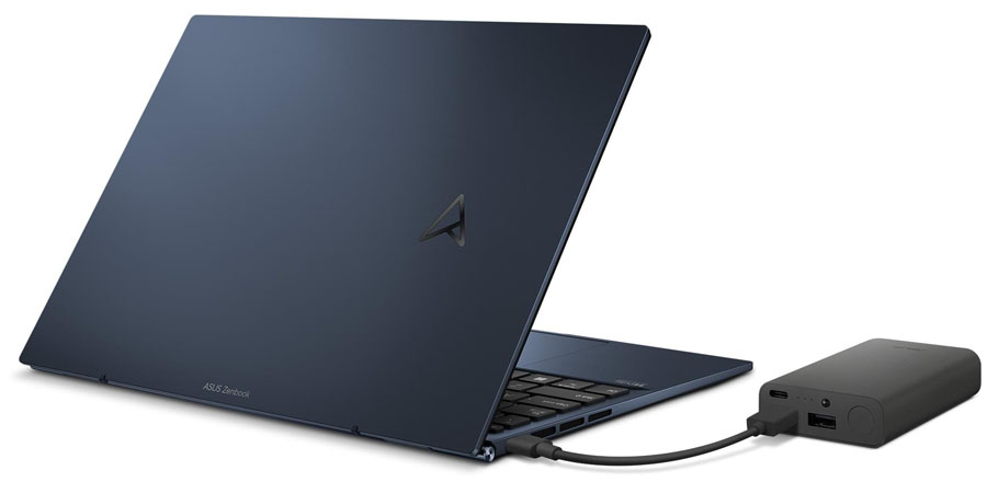 Asus ZenBook S 13 OLED gets its juice from a 67Whr Li-ion battery that supports 100W of PD charging. However, Asus only includes a 65W Type-C charger in the box. Beyond charging, you can use the three USB-C ports for data transfer and display output. Aside, you get a 3.5mm combined headphone jack.