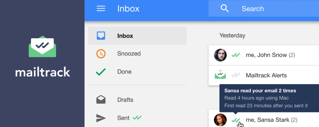 If you ever wonder what it would be like if the email had the same sent, received and seen features as that of all common chat messengers, look no further. Mailtrack.io is an email tracking extension for Gmail and Inbox that lets you know if your emails have been read or not. Mailtrack.io extension adds the double check marks in your email. It also shows you how long ago your email was last seen and how many times it was opened. So people who don’t reply after reading the email, be aware we are watching you!