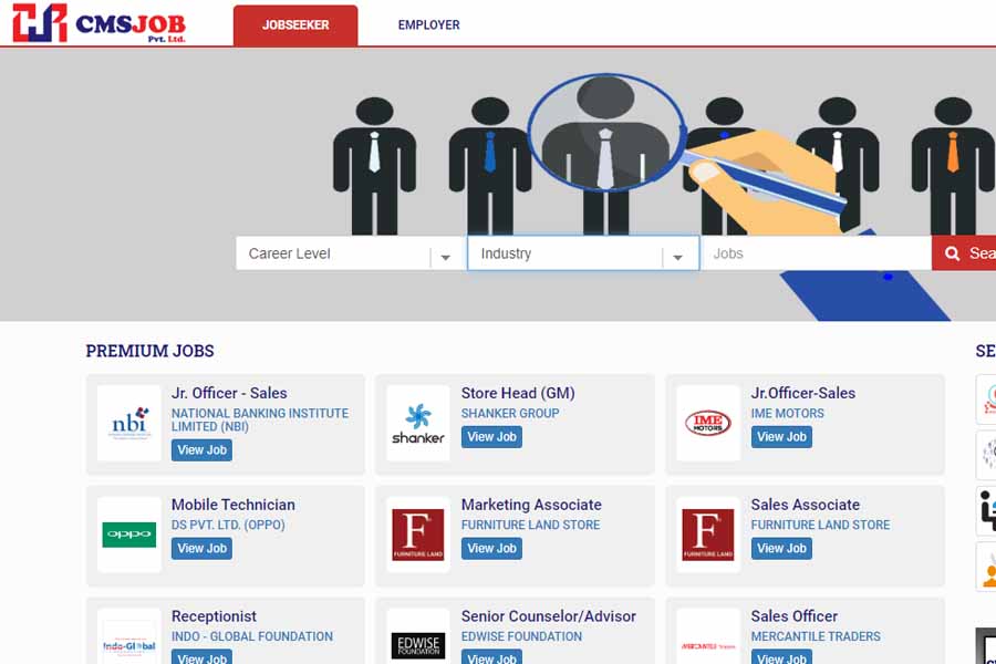 Next up on the list is CMS Job. It is the sister company of Catalyst Management Services Nepal (CMS Nepal) and provides services beyond just recruitment & placement of job seekers. CMS Job also offers job training to prepare individuals for their professional career, HR consulting for business houses to help the companies maximize their employees' productivity, etc. With all this, it has built a pretty respectable rapport with various big companies and the general public.