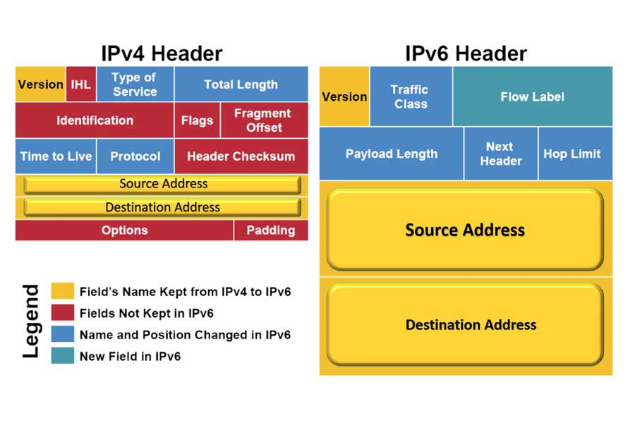 Other than the obvious address space difference, there are some other things in which IPv4 and IPv6 differ. For instance, IPv6 supports multicast addressing. That means it allows bandwidth-intensive packets to be sent to multiple destinations simultaneously, thereby reducing the network bandwidth.