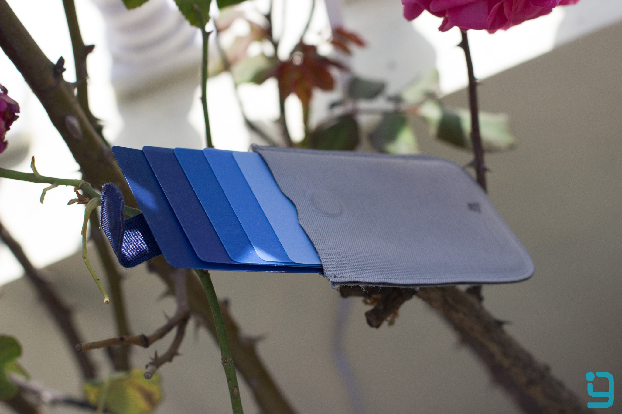 Design wise, the DAX is a different-than-normal wallet. It is really small and sits comfortably in the hand and in the pocket. Outside, there is a strap which, as I already mentioned, opens the inner side of the product. The strap sticks to the wallet due to a magnet. DAX's logo sits on the front. A small compartment is on the back which is useful for adding an extra bit of card or money.