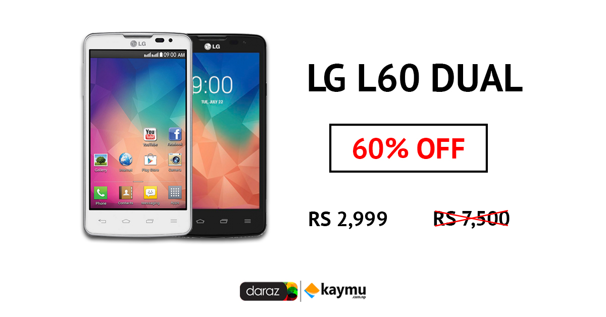 We are always looking out for the best deals for our readers. And here's one of the best deals for someone who is looking for an affordable smartphone. Kaymu, one of the leading eCommerce websites in Nepal, on the occasion of "Smartphone Sale Campaign" is offering it's 3-year-old LG L60 Dual for just Rs. 2999. This makes the LG G60 the most affordable android smartphone you can buy in Nepal.