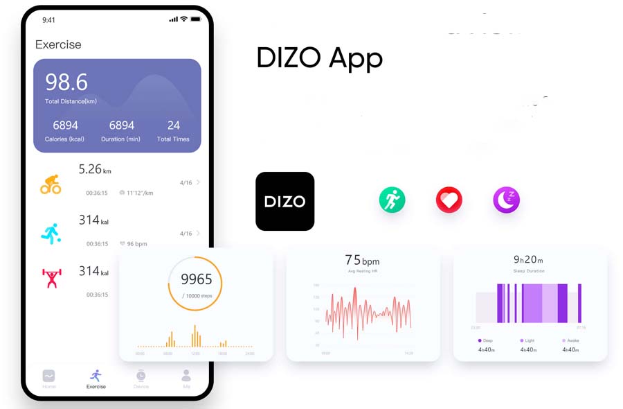 Dizo Watch 2 features an optical PPG heart sensor that supports 24-hour heart rate monitoring. Similarly, it can also record your blood oxygen saturation (SpO2) level. You can even keep records of your deep and light sleep with this watch.