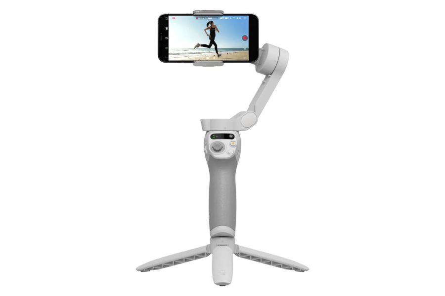 The DJI OM SE is one of DJI’s most affordable smartphone gimbals available in Nepal. It features a foldable design and a magnetic phone clamp, allowing users to quickly and securely mount their smartphones. The gimbal weighs around 352 grams and supports smartphones weighing up to 290 grams, making it suitable for most modern devices.