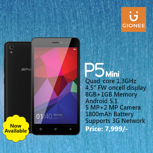 Teletalk Pvt. Ltd., the authorised national distributors of Gionee smartphones in Nepal, has officially launched a budget oriented android smartphone -- Gionee P5 Mini. The phone is available for purchase from different gionee outlets for a maximum retail price of Rs. 7,999.