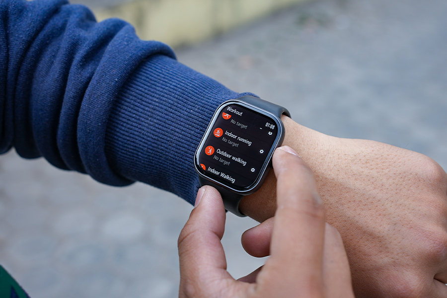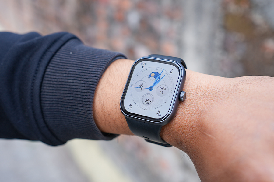 The Watch 2 Pro follows the rectangular smartwatch design that we’ve seen plenty of times before. But I don’t mind that at all. It’s slim at 9.99mm and light at just 29 grams, so it feels comfortable on my wrist even during longer wear. The metal frame and crown give it a slightly premium touch, and it doesn’t feel cheap. But one thing I must say, the crown gets pressed accidentally a lot of times, which triggers the menu—for instance —while typing on my laptop, when my wrist lifts up a bit!