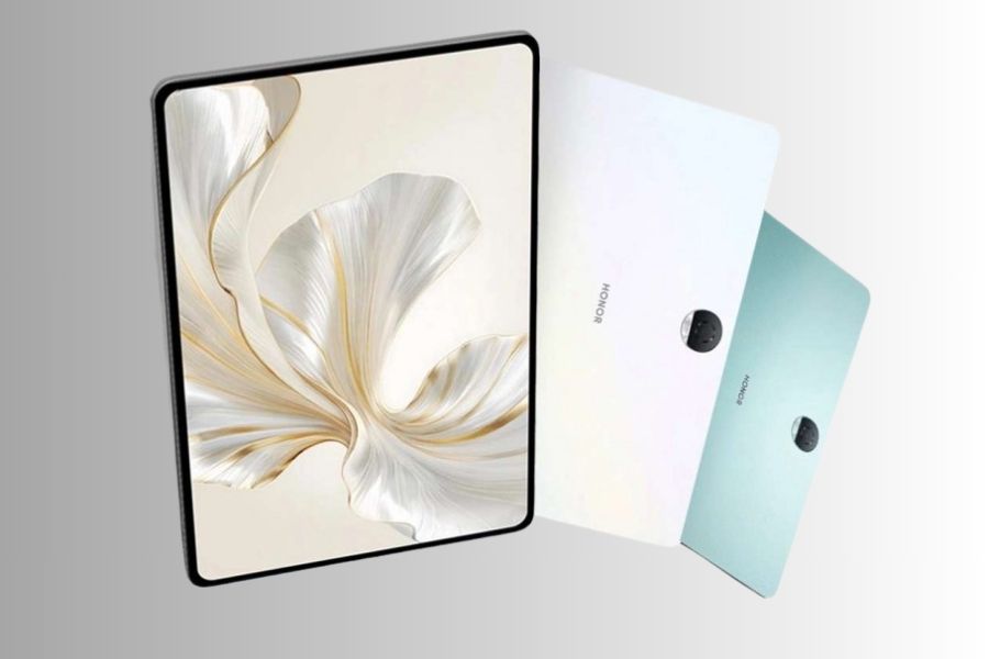 The Honor Pad 9 comes with an all-metal body in a slim frame at just 6.96mm. It weighs 555 grams and comes with a circular camera island aligned centrally on the back. Meanwhile, this tablet features pretty thin bezels around the screen where it also places the front-facing camera. The Honor Pad 9 is available in three colour options: White, Blue, and Grey.