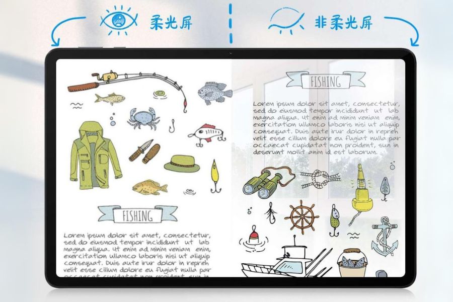 Moving on to the screen, we are greeted with a huge 12.10” display with 2,560 x 1,600 pixels. It is an IPS LCD panel that can reach up to 500 nits of brightness. Additionally, Honor has equipped this screen with an anti-glare glass that eliminates up to 98% reflections. You can also get the Honor Pad 9 with a paper-like screen protector that the company calls “Soft Light”. This screen protector apparently makes drawing, and writing on the display feel more enjoyable.