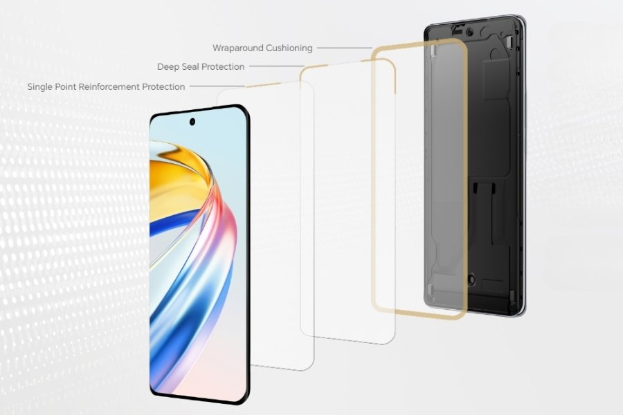 Honor started highlighting the toughness of its devices with the Honor X9a. This phone came with a 0.65mm deeply reinforced glass that could apparently handle pressures of over 900MPa2. Furthermore, it was a 3D curved screen, which notoriously cracks rather easily. However, by layering their phones with this glass, Honor could continue to have the premium-looking curved display, while offering top-tier drop resistance. We even tested it ourselves during the review process, and it certainly stood up to its claims.