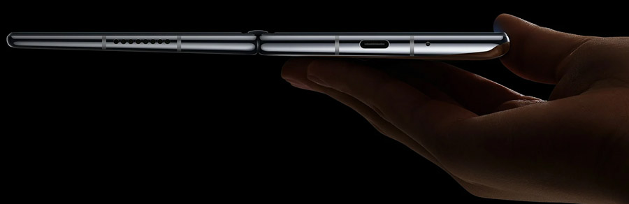 Its hinge is made from zirconium-based liquid metal and carbon fiber panels. Because of the new hinge, the phone can be folded seamlessly. That is, you won’t see any gap between the two half when folded.