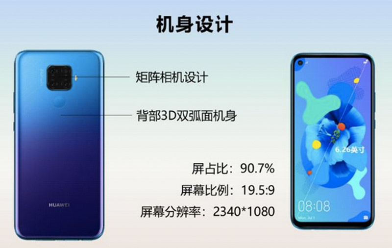 As per the leaks, the phone has a 6.26" Full HD+ punch-hole screen with a resolution of 2640x1080 pixels. It will use Kirin 810 SoC with either a 6GB or 8GB RAM. The storage options are 128GB for the 6GB variant and 128GB or 256GB for the 8GB variant.