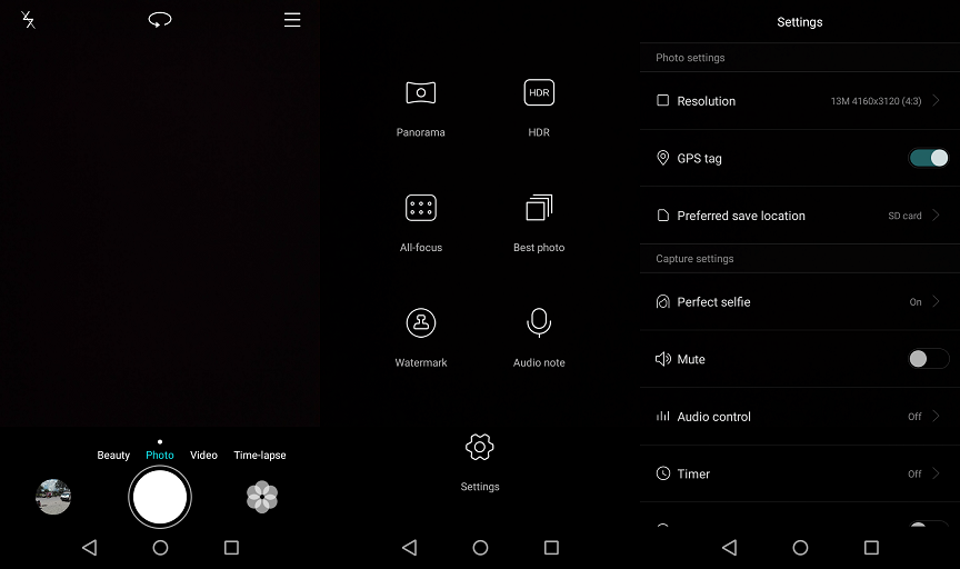 The camera app looks very similar to the one seen on iOS 8. It’s simple and hence effective. It has different modes like HDR, All-Focus Mode, and a beauty mode.