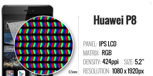 P8 holds a 5.2-inch IPS-NEO Full HD 1080 x 1920 display with the pixel density of 424 ppi. The screen is also protected with corning gorilla glass 3.