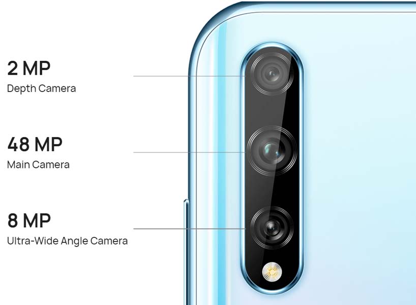 Huawei Y8p comes with a 48MP triple camera setup. The three cameras are enclosed inside a pill-shaped camera module along with an LED flash on the top left side at the back. The 48MP primary camera has a SuperSpectrum sensor and an aperture of f/1.8. The SuperSpectrum sensor helps capture better details, even in low-light conditions.