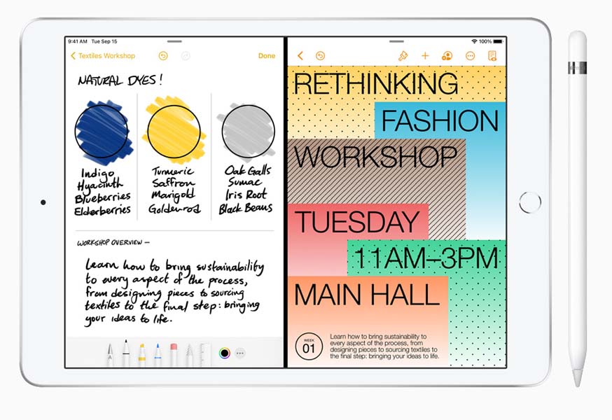 Its 10.2-inch IPS display has multi-touch support. The display has a pixel density of 264 PPI. Apple is claiming up to 500 nits of brightness. The panel supports the first-generation Apple Pencil and has an oleophobic coating on top to avoid fingerprints.