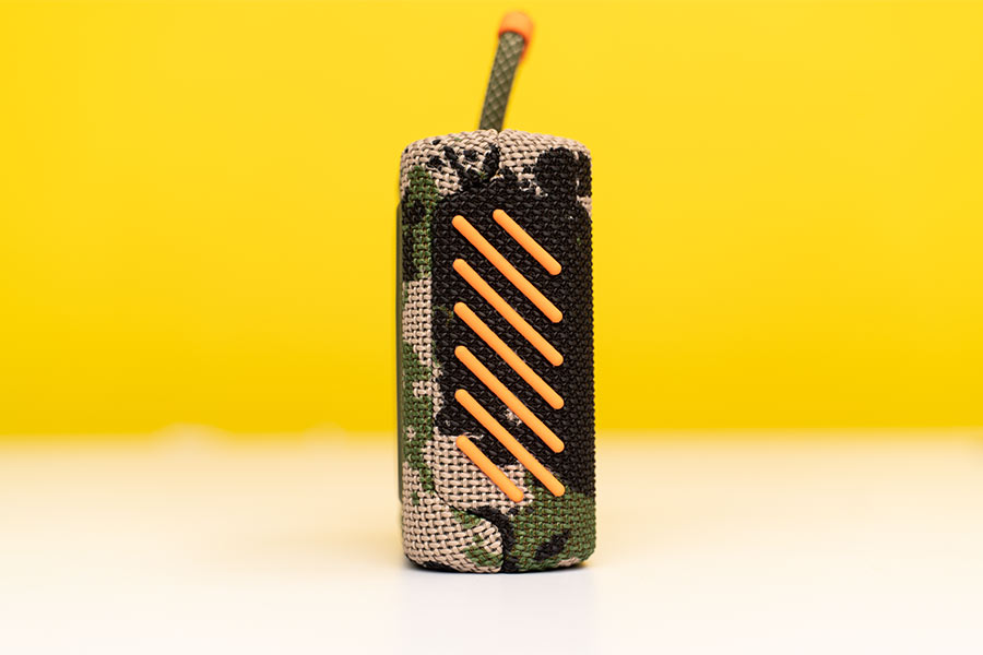 Here, while JBL GO 2 gave in to minimal aesthetics, this one looks a lot bolder, and consequently more premium as well. The base of the speaker offers a decent grip, while also keeping the device steady when playing thumping music. Likewise, if you choose to place it standing tall instead of laying the GO 3 flat, the cylindrical rubber pads help it stay in place.