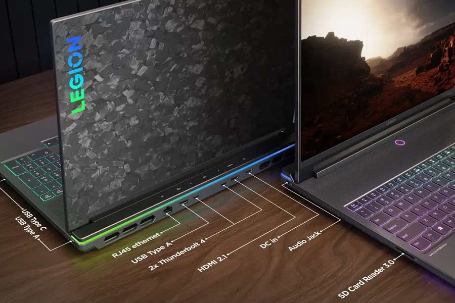 It is also very portable at 2.56 kgs, especially considering the power it’s packing. The Legion 9i is available in a single Carbon Black color option. But the top case looks cool with its unique forged carbon chip pattern.