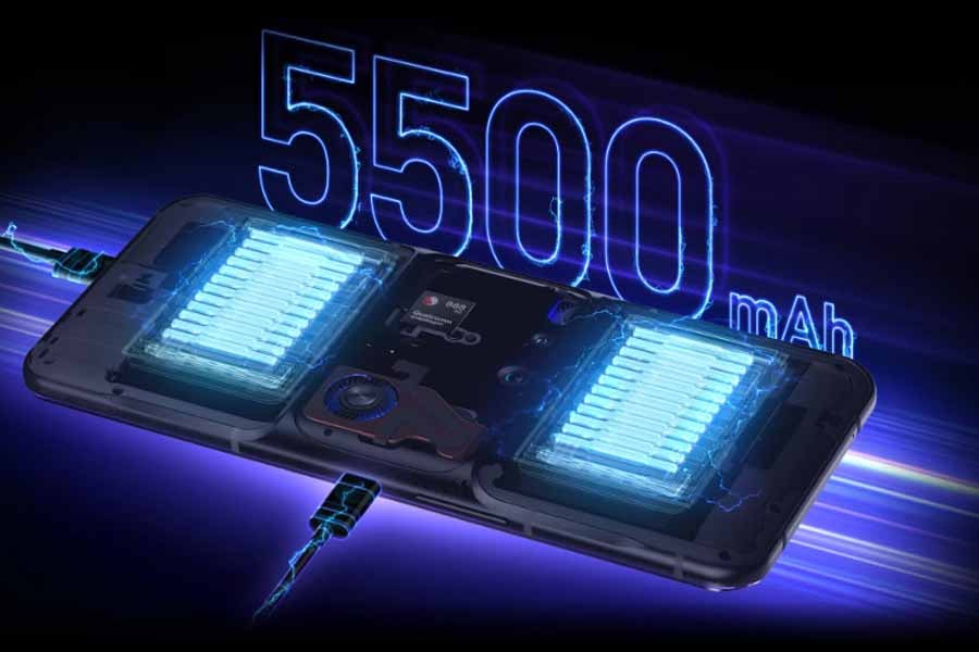Built for gamers, it utilizes a total of 5500mAh battery, where each 2750mAh cell is positioned on either side of the phone with a centrally placed hardware bump. For charging, there are two USB ports that support a total of 90W of input and can fully charge the device in 30 minutes.