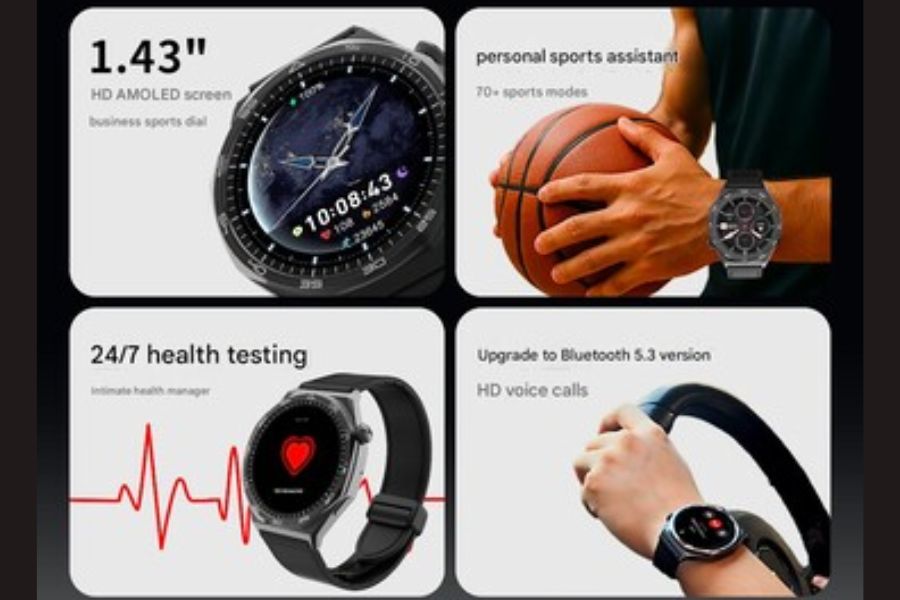- Display: 1.43-inch circular AMOLED, 466 x 466 resolution