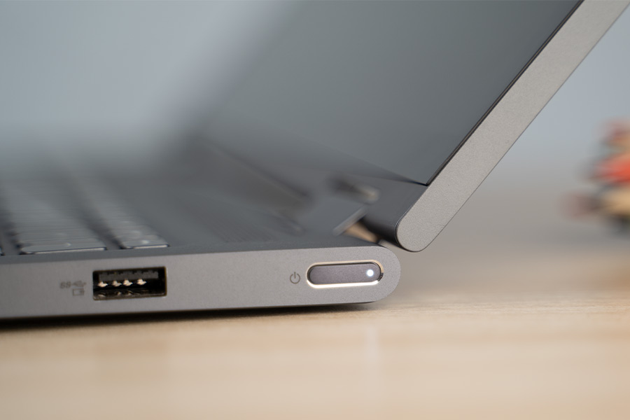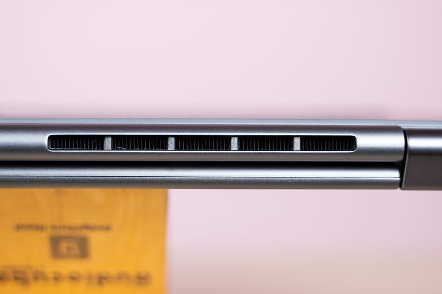 In terms of cooling mechanism, the Yoga 7i gets a single fan solution which is to be expected from such a device. There are the standard air intake vents at the bottom while the exhaust is sandwiched in the hinge itself. While this is a fairly common practice, I wish more brands would adopt the excellent ErgoLift hinge design found in Asus laptops. Security-wise, the Windows Hello compliant fingerprint sensor on the keyboard deck is quite fast and accurate.