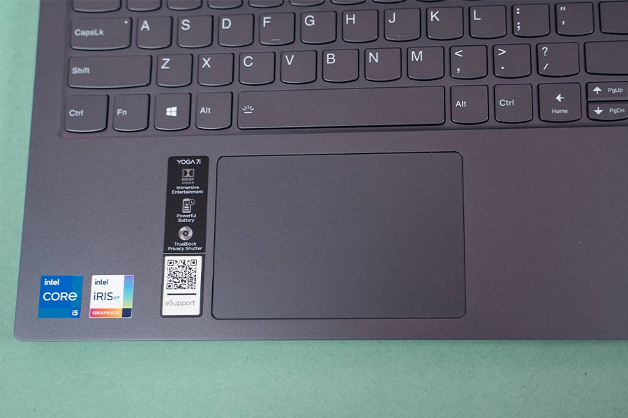 Likewise, Yoga 7i’s trackpad is nothing special either. This non-centric layout still doesn’t sit right with me as I often tend to mistake the right key with the left even to this day. It is a glass-covered touchpad with PTP support. The integrated left/right keys do click well but I wish they were a little quieter. Besides, the multi-finger gestures including pinch-to-zoom work just fine here.
