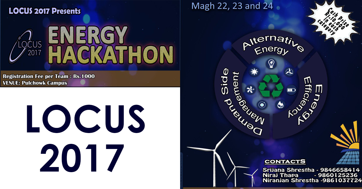 Locus 2017 is kicking off from 9th of February (Magh 27 2073) and it has put forward Energy Hackathon as the pre-event. Locus is basically a student-run organization in the Pulchowk campus and is responsible for organizing the largest innovative tech-fair in Nepal. The organization is pillared by the students of Electrical, Electronics and Computer Departments of the Pulchowk Campus. To know more about the Locus 2017 and the events and pre-events organized by it, click here.