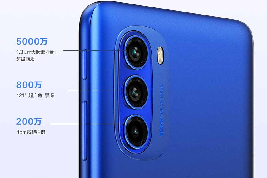 Moto G51 5G flaunts a triple camera setup at the back. The primary camera here uses a 50MP sensor with an f/1.8 aperture lens. It is accompanied by an 8MP ultrawide/depth camera alongside a 2MP macro sensor. Over on the front, there is a 13MP selfie camera in the international model while the Chinese version has a 16MP sensor.