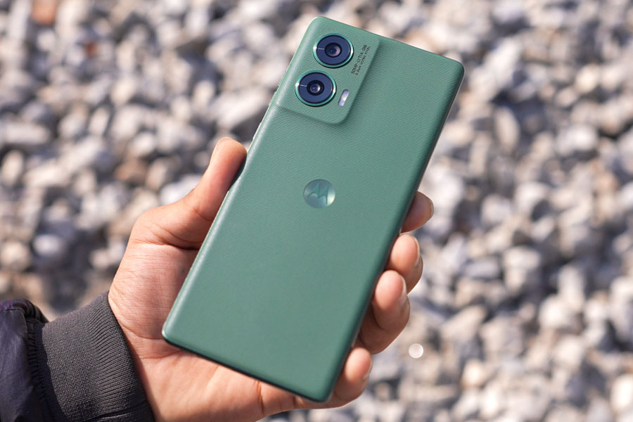 Let me start with the design. Motorola phones always stand out visually, and I can instantly tell it’s a Motorola device just by looking at it. The leather back, curved frame, and slim form factor are classic Motorola elements, and this phone looks and feels premium in hand as well. It’s comfortable to hold and use, not bulky or heavy at all.