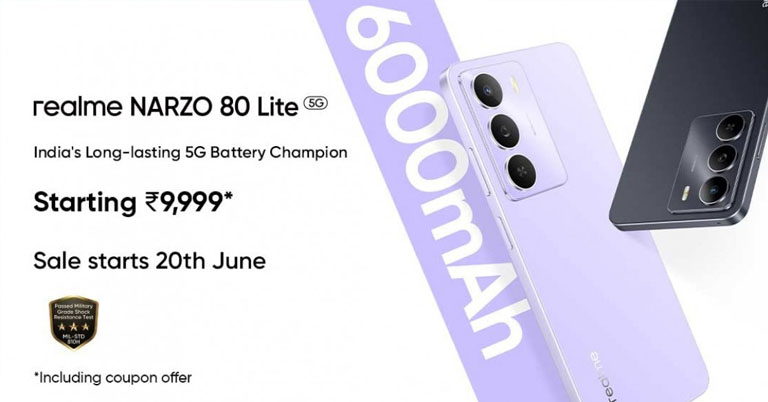 The Realme Narzo 80 Lite 5G is priced at INR 10,499 for the 4GB variant and INR 11,499 for the 6GB version in India. After launch discounts, the effective prices drop to INR 9,999 and INR 10,799, respectively. In Nepal, the device is expected to start at NPR 18,000.