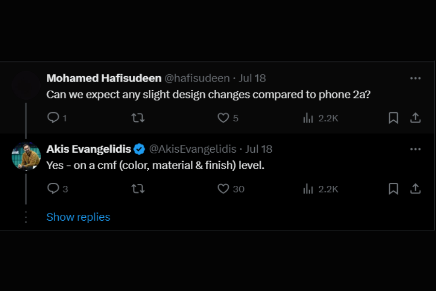 Evangelidis replying to one of the comments in his tweet said the Nothing Phone (2a) Plus will have a design change in colour, material, and finish level. However, the leaked images do not show any noticeable difference except for the colours.