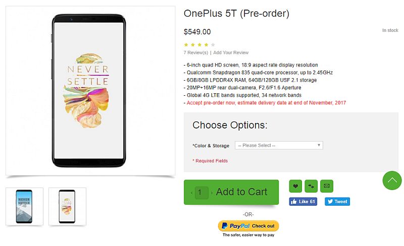 The Chinese e-commerce website, which has been successful to plant the bewilderment amongst the most is Oppomart. Tagged with the price tag of $549, the device on the shelf for pre-orders possessed all the rumored specifications. This comes on the same day as the Antutu screenshots were out suggesting the device to possess Android Oreo out of the box. Although the website started taking for the unannounced OnePlus 5T device, the promised date of delivery is the end of November 2017.