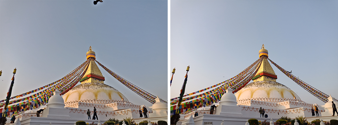 On the rear side sits a 16MP camera which is decent at its best. Under ample lighting, the device can capture pictures with good color reproduction and saturation. But I wasn’t at all impressed by the HDR mode. The HDR enabled picture on the right only has a little bit of increased exposure.