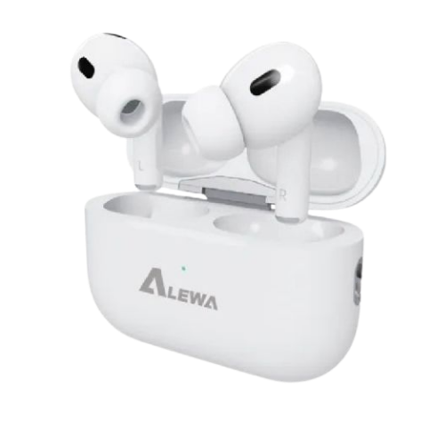 The Alewa AL-777 offer a sleek design reminiscent of Apple AirPods, featuring a minimalist white color scheme. Each earbud includes a stem for intuitive control and a snug fit. The charging case, designed