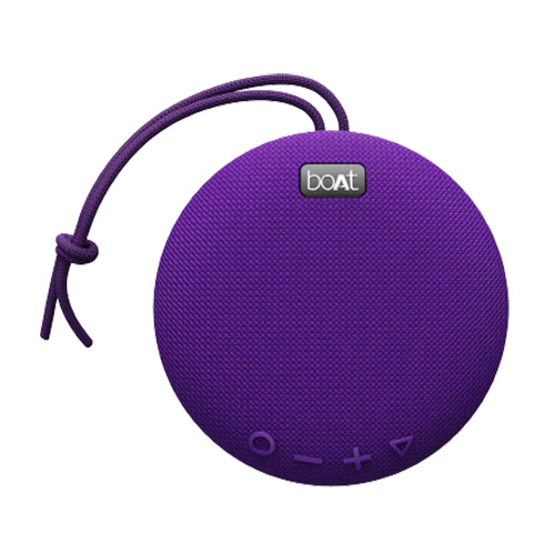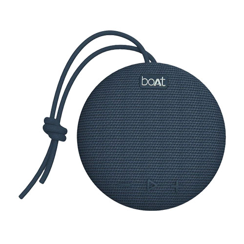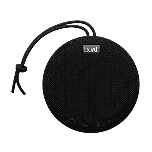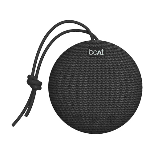 The boAt Stone 190 is a portable TWS speaker that comes in a circular pebble-like design. The controls of this speaker are scattered on the side of its body and on the top. It also comes with a shoelace-lik