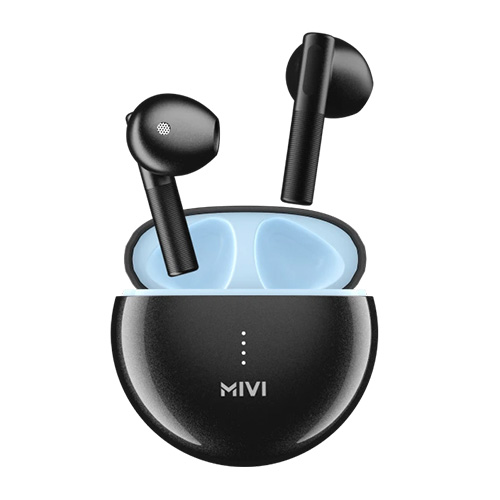 The Mivi DuoPods K4 comes in a semi-in-ear design with a dual-tone and dual-texture finish. The bottom half of the stem has diagonal stripes while the upper half comes with a smooth glossy finish. Similarly, the upp