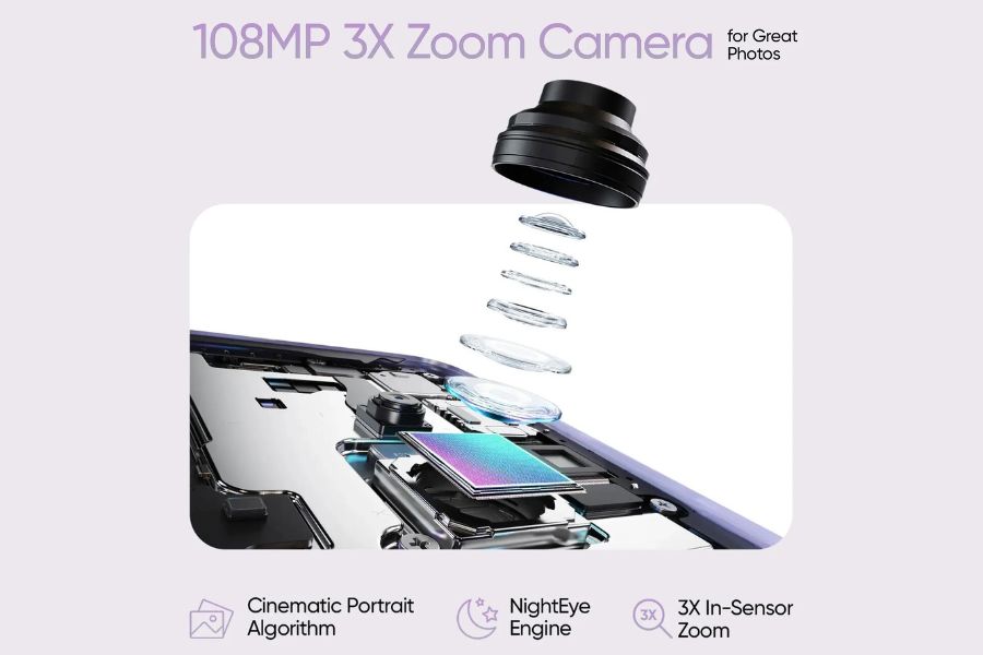 108MP rear camera with f/1.75 aperture, ISOCELL HM6 sensor, 3x lossless zoom