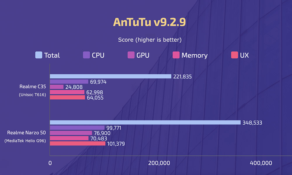 Case in point, the Helio G96 chip on the Narzo 50 yields almost 50% better results on AnTuTu 9 than this.