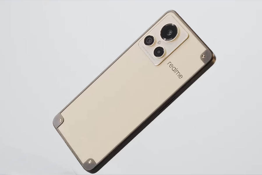 The back of the phone is made of vegan leather and unlike the GT 2 Pro, this guy has flat frames with squared-off edges. As per Realme, the frame has gone through 20 polishing processes, giving it a fine matte texture. There are also trunk-inspired metal rivets on the bevel.